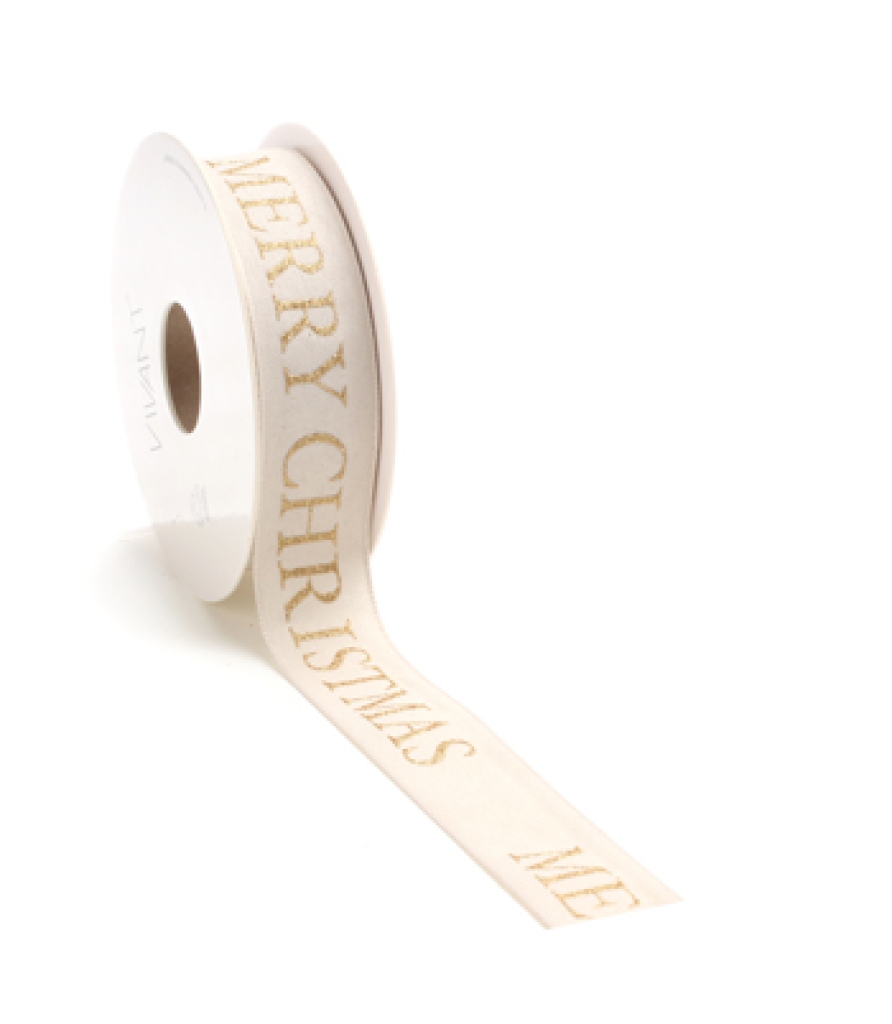 NASTRO TESSUTO 25MMX15MT BEIGE SCRITTA XMAS ORO