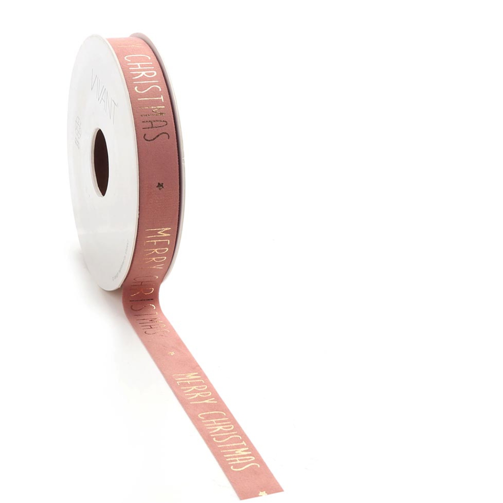 NASTRO VELLUTO 15MMX5MT ROSA MERRY XMAS ORO