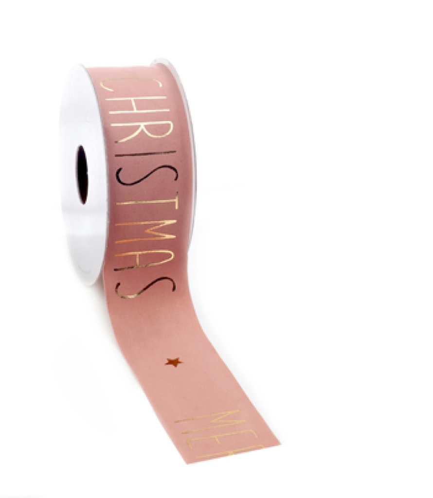 NASTRO VELLUTO 40MMX5MT ROSA MERRY XMAS ORO
