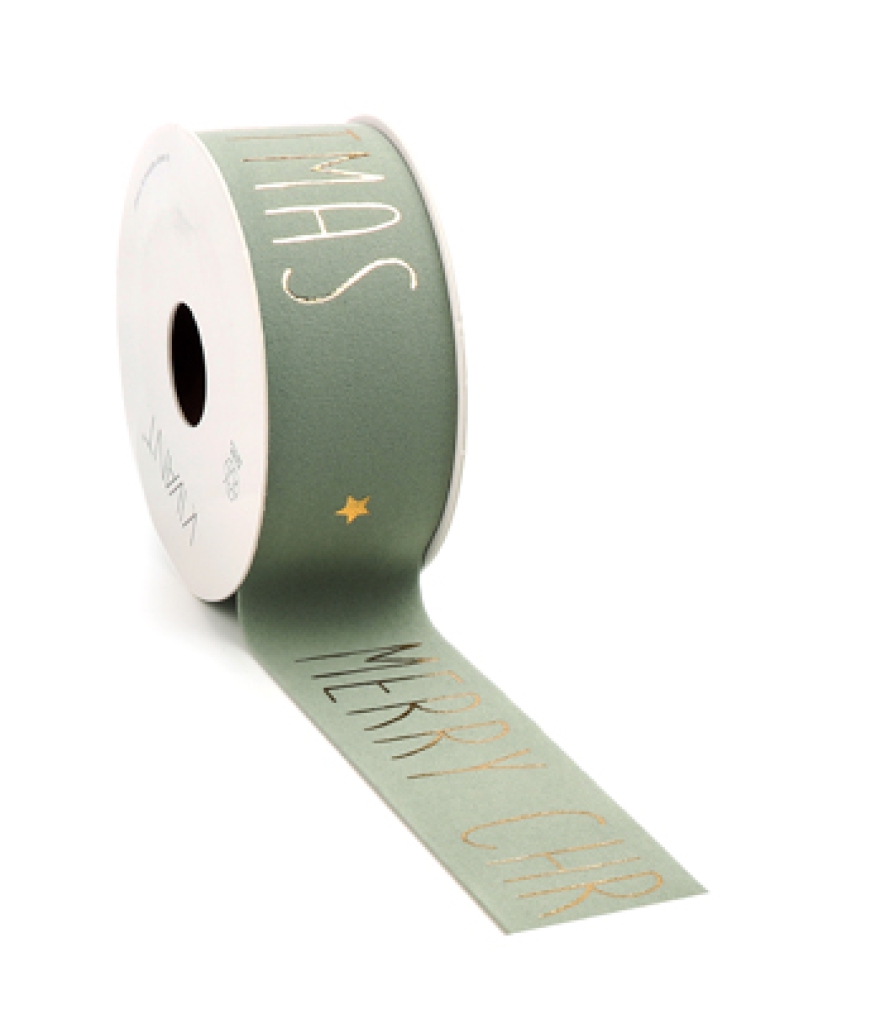 NASTRO VELLUTO 40MMX5MT VERDE MERRY XMAS ORO
