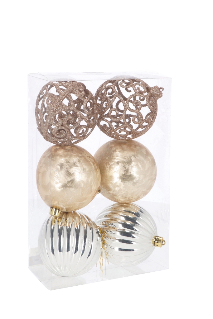 PALLINE 6PZ PLASTIC DIAM 10CM CHAMPAGNE MOD.ASS.