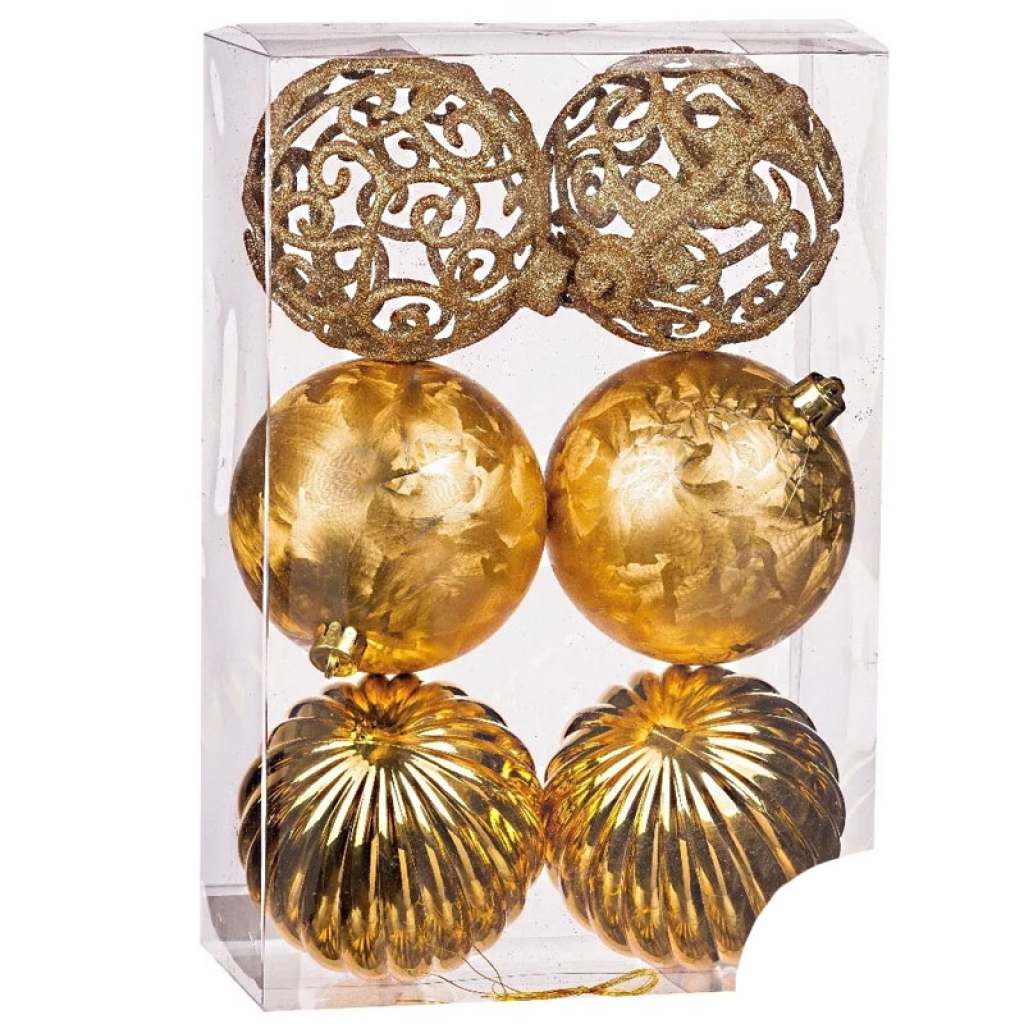 PALLINE 6PZ PLASTIC DIAM 10CM ORO MOD.ASS.: vendita all’ingrosso a prezzi competitivi con consegna veloce by Bocchio srl
