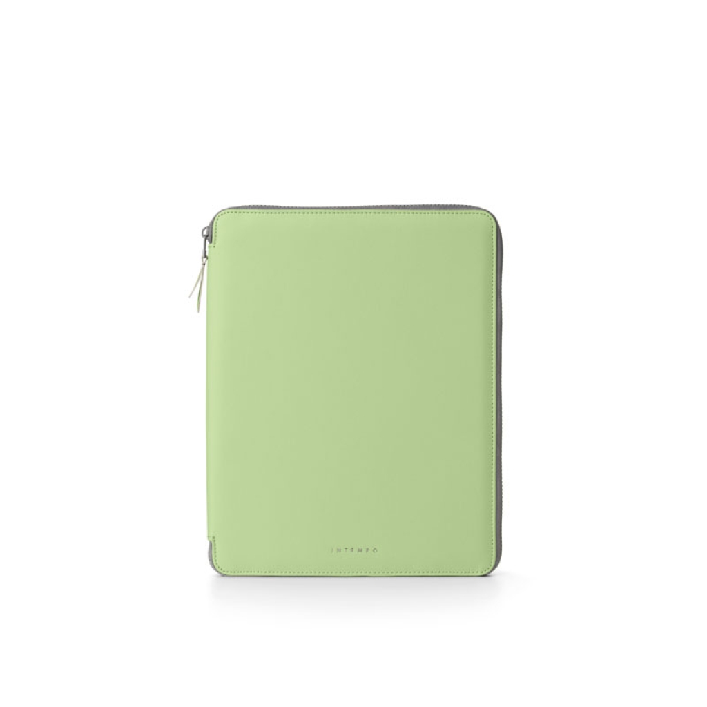 Portablocco slim in similpelle con zip, tasca interna a soffietto, scomparti portabiglietti, asola portapenne, blocco A4 in dotazione. 26x33x2cm.