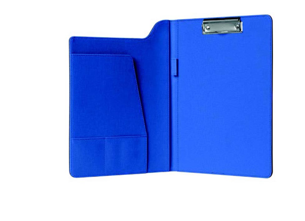 Cartella conferenze cm 31x25x1,5. Copertina antiscivolo. Aletta portadocumenti. Scomparti per biglietti. Asola portapenne. Molla in metallo per notes A4.
