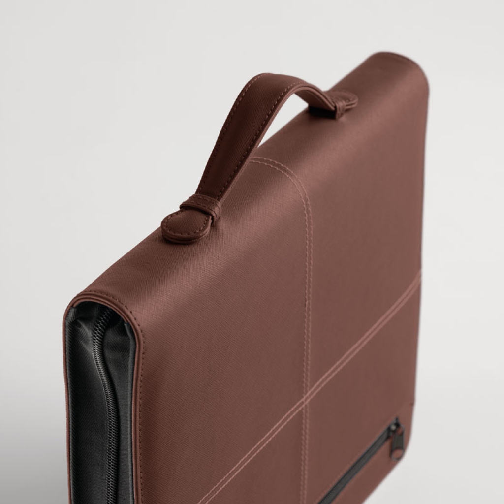 Portablocco con anelli e maniglia New Classic, formato A4 (29x35x4 cm), elegante e professionale, dotato di meccanismo ad anelli diametro 25 mm, tasca interna a soffietto porta documenti, scomparti per biglietti da visita e blocco A4 incluso, realizzato in similpelle liscia di alta qualità, perfetto come portadocumenti compatto e raffinato per ufficio, riunioni o studio, ideale anche come idea regalo business.