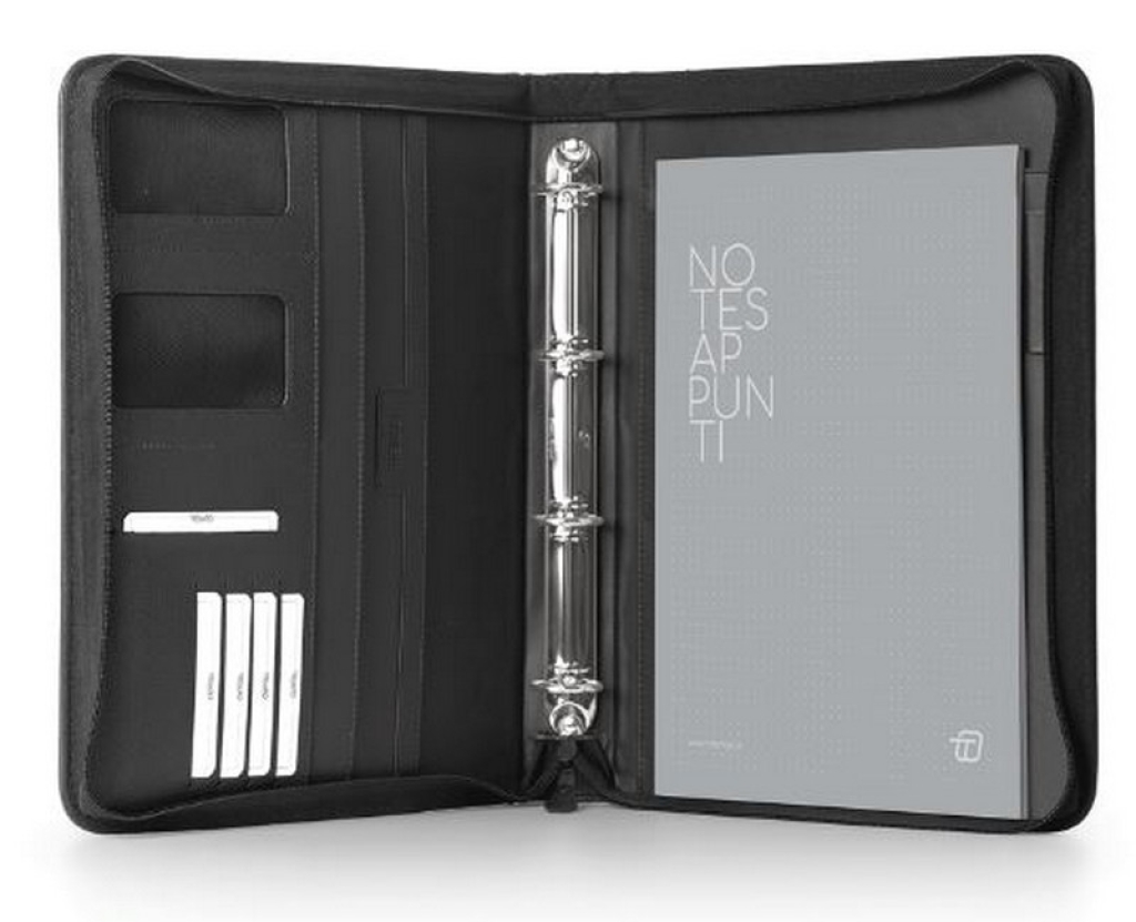 PORTABLOCCO OFFICE CON ZIP E ANELLI ECOPELLE NERO