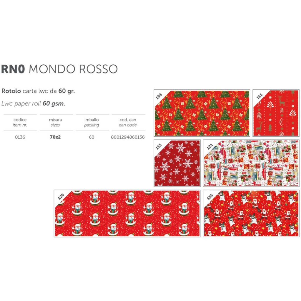 ROTOLO CARTA REGALO 70CMX2MT NATALE MONDO ROSSO
