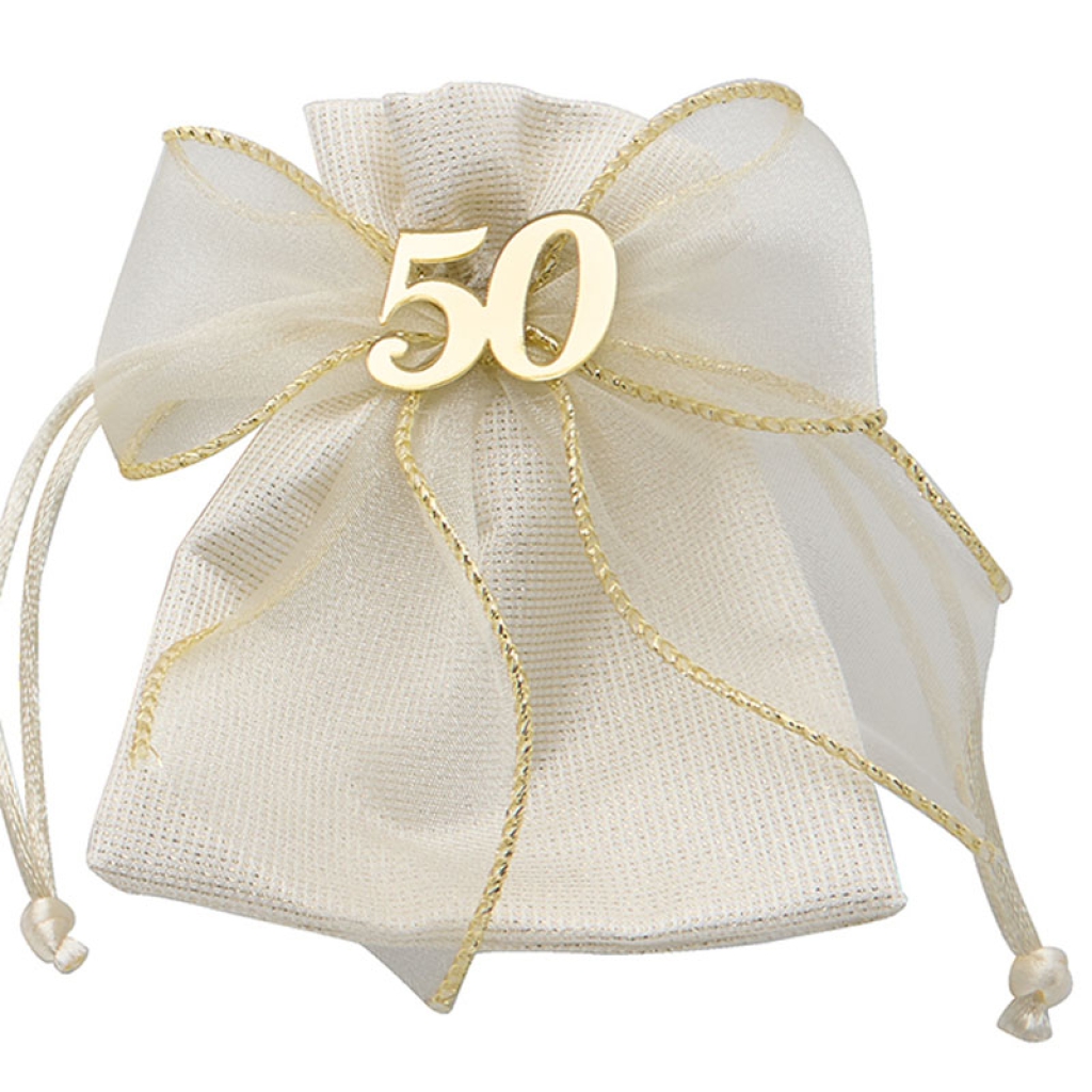 SACCHETTO FIOCCO 50° 12PZDETTAGLI DORATI: vendita all’ingrosso a prezzi competitivi con consegna veloce by Bocchio srl