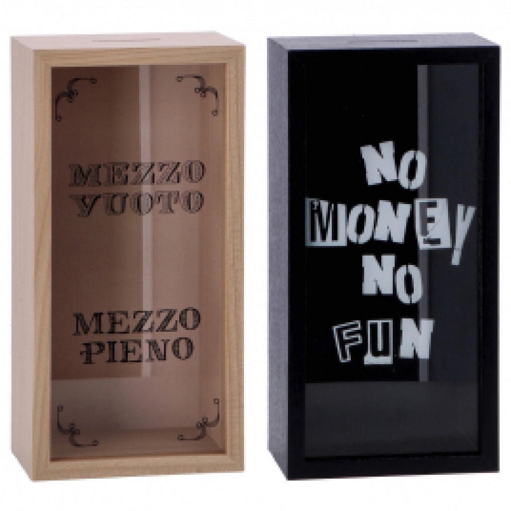 SALVADANAIO LEGNO E VETRO 15X10H30CM SOGGETTI ASSORTITI