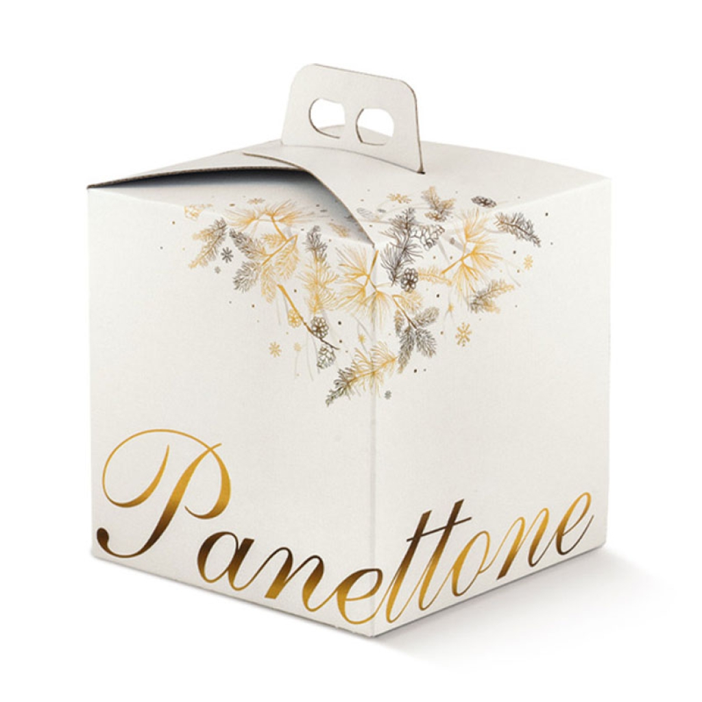 Scatola in cartone accopiato con maniglia per confezionare un panettone da 750gr./1kg.