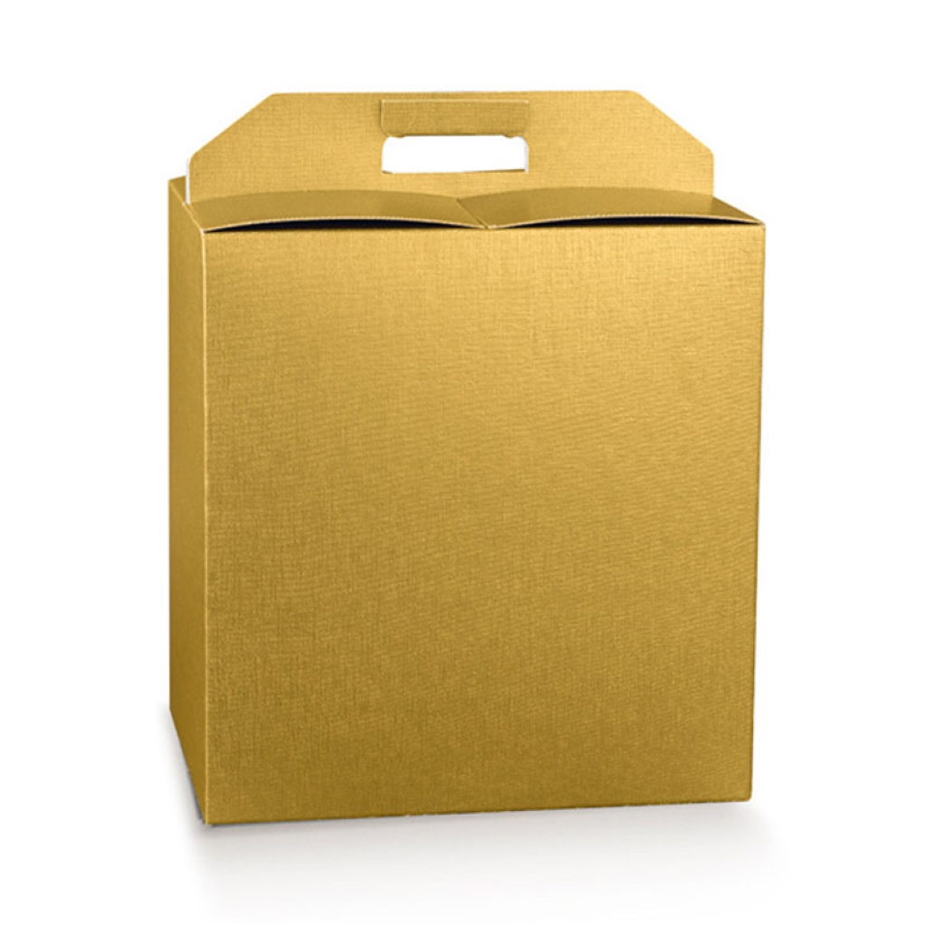 La confezione perfetta per i regali natalizi, realizzata in cartone accoppiato con maniglia esterna. Disponibile in diversi formati, è ideale per contenere un panettone da 750g/1kg e una bottiglia, oppure una selezione di prodotti enogastronomici. Capacità consigliata: da 3,5 a 7 kg.