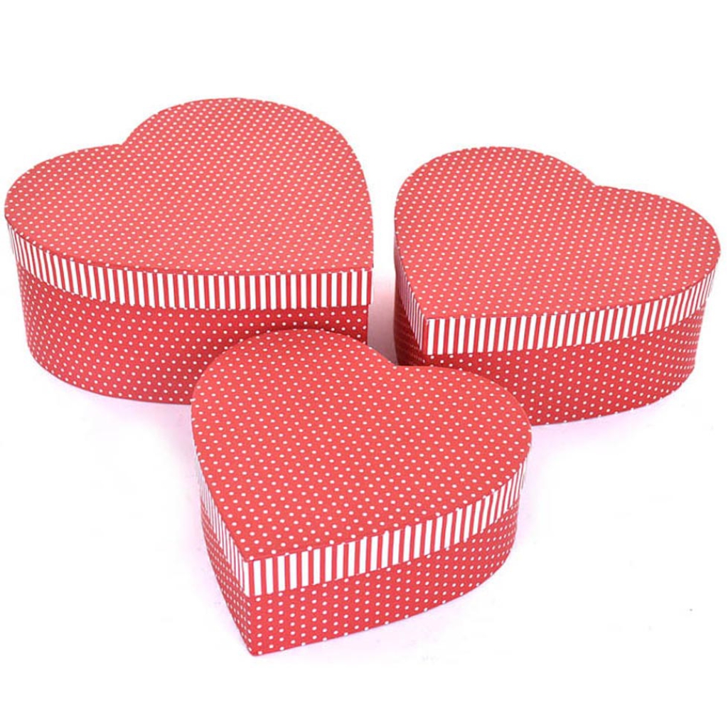 SCATOLE MATRIOSKA SET 3PZ CUORE ROSSA POIS BIANCHI: vendita all’ingrosso a prezzi competitivi con consegna veloce by Bocchio srl