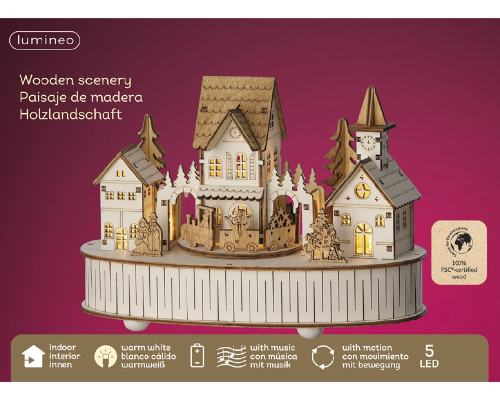 SCENARIO LED 12X22H15CM VILLAGGIO CON MOVIMENTO
