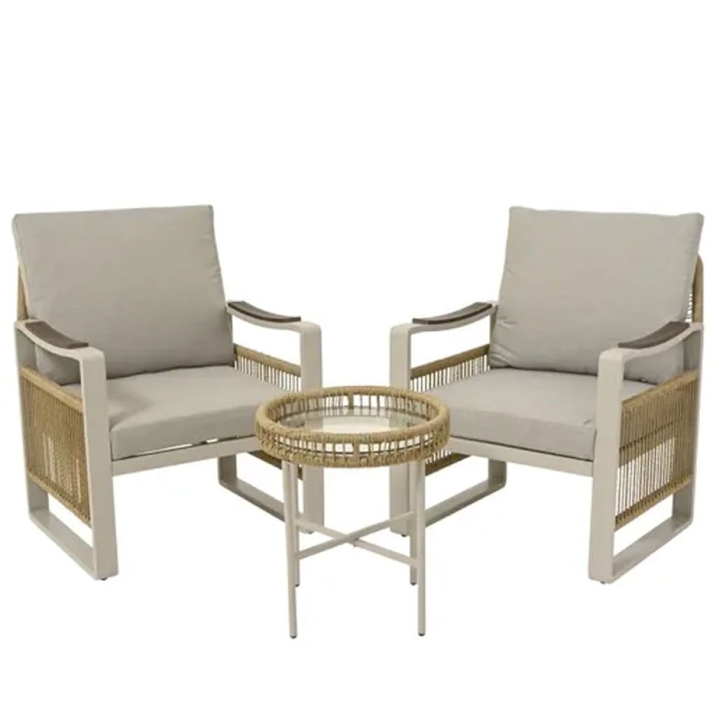 SEDIE E TAVOLO DA ESTERNO 3PZ METALLO E RATTAN