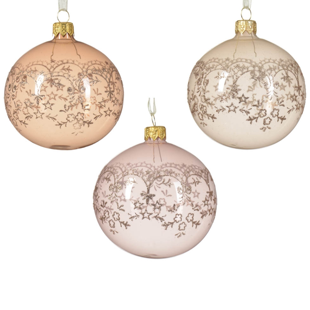SFERA 6PZ D80MM RICAMO VETRO ROSA COL.ASS.
