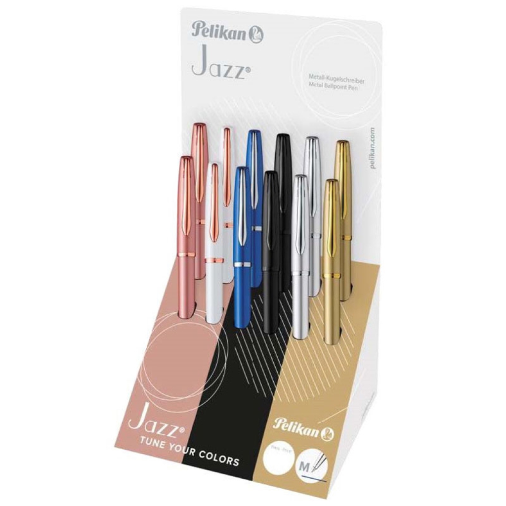 La penna a sfera Pelikan Jazz in metallo combina design elegante e funzionalità impeccabile. Le sue linee fluide e leggere trasmettono dinamismo e raffinatezza. Clip a becco tipica di Pelikan, montata su molla per garantire massima robustezza e durata. Questa penna a sfera a rotazione è dotata di una cartuccia di grande capacità con inchiostro blu documentabile, conforme alla norma ISO 12757-2, ideale per l uso professionale e quotidiano. Perfetta per chi cerca una penna Pelikan elegante, affidabile e dal tocco raffinato.