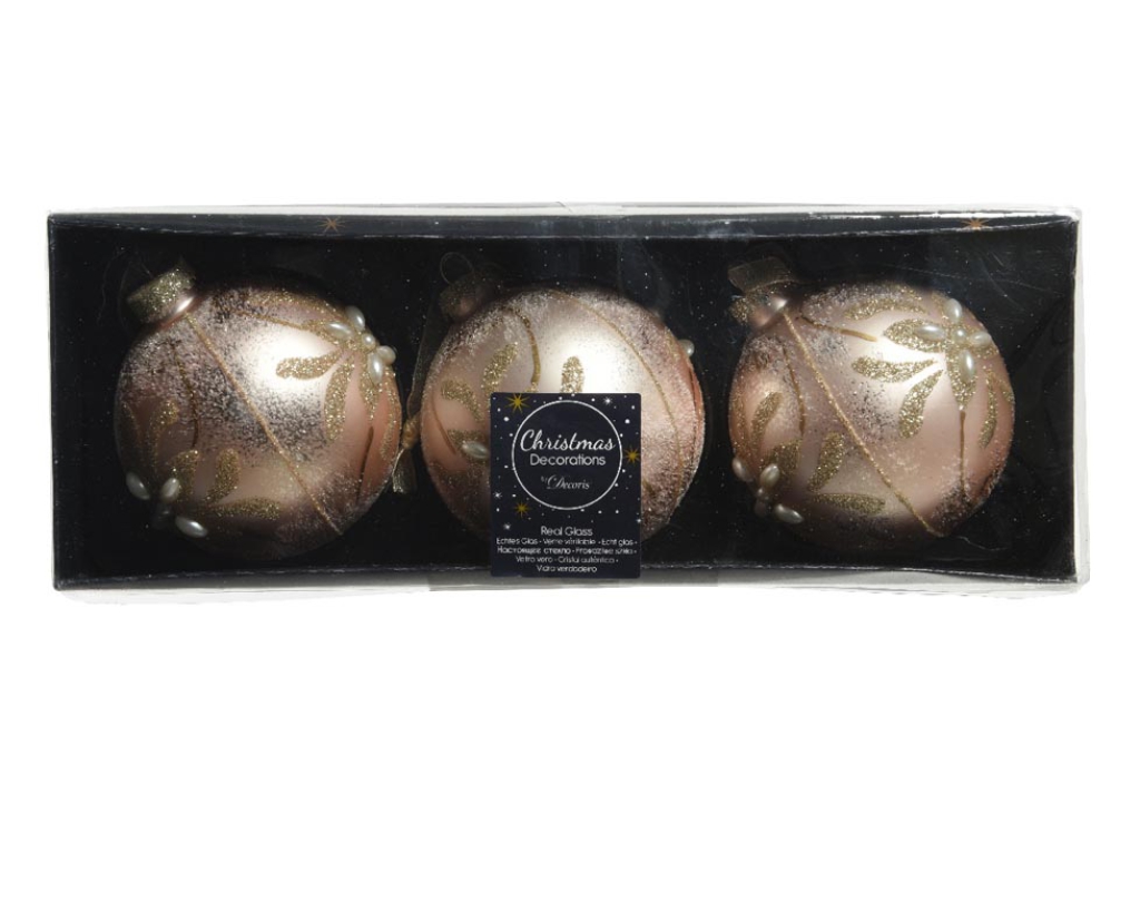 SFERE 3PZ D80MM VETRO CON FIORE E GLITTER