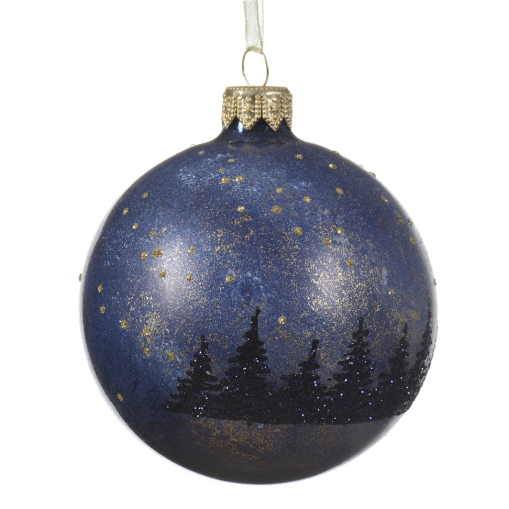 SFERE 6PZ D80MM VETRO FORESTA BLU NOTTE