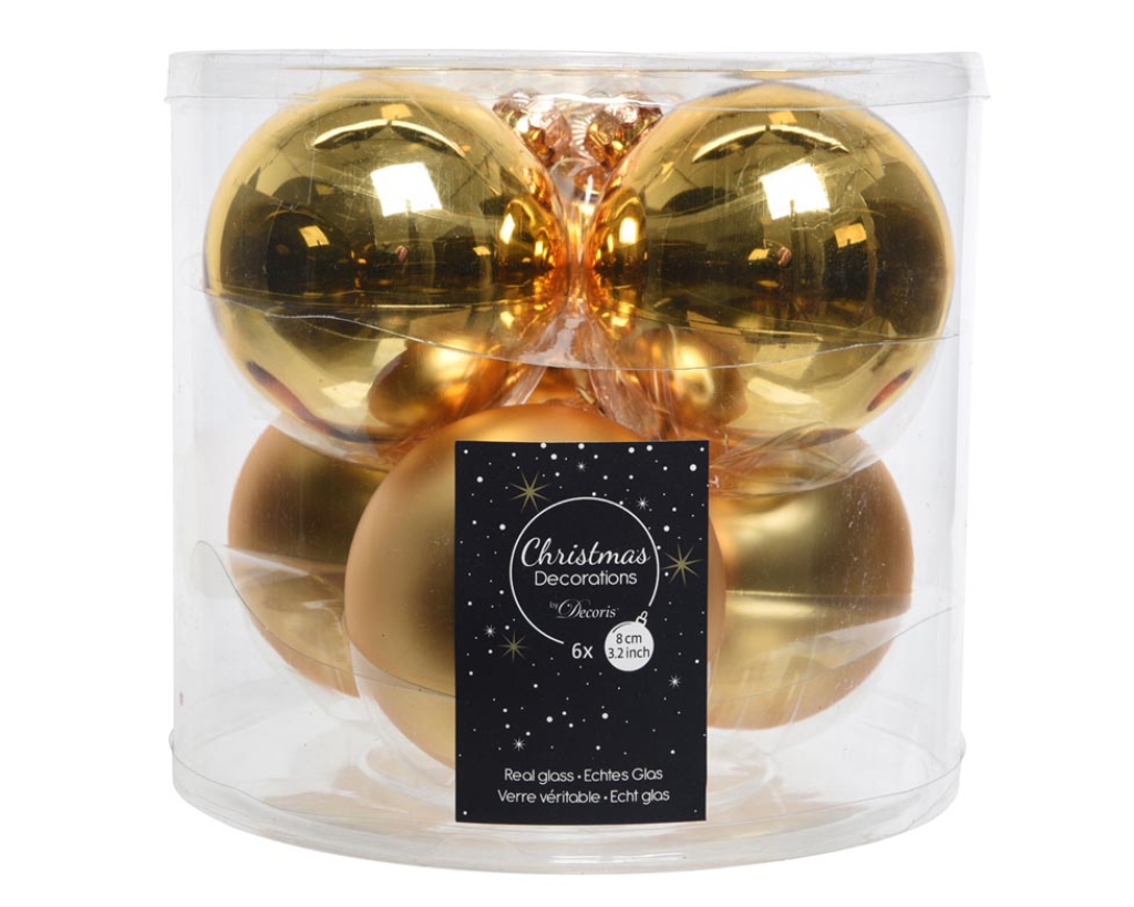 SFERE 6PZ D80MM VETRO ORO CHIARO