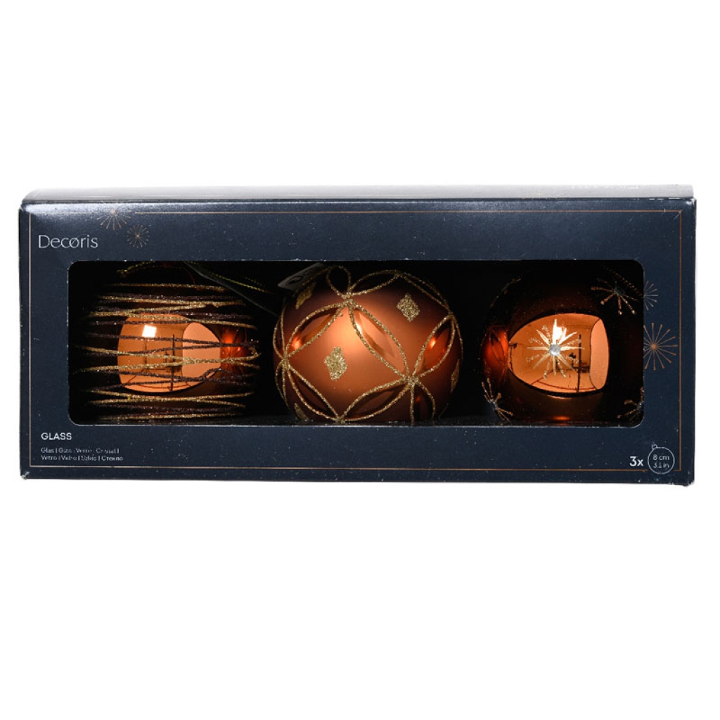 SFERE VETRO 3PZ CEDRO CALDO DECORI ASSORTITI
