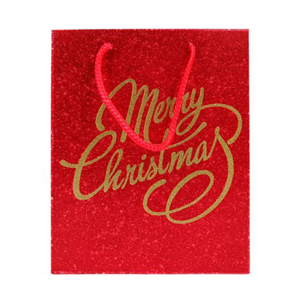 SHOPPER 14X7H18CM ROSSA GLITTER MERRY XMAS ORO