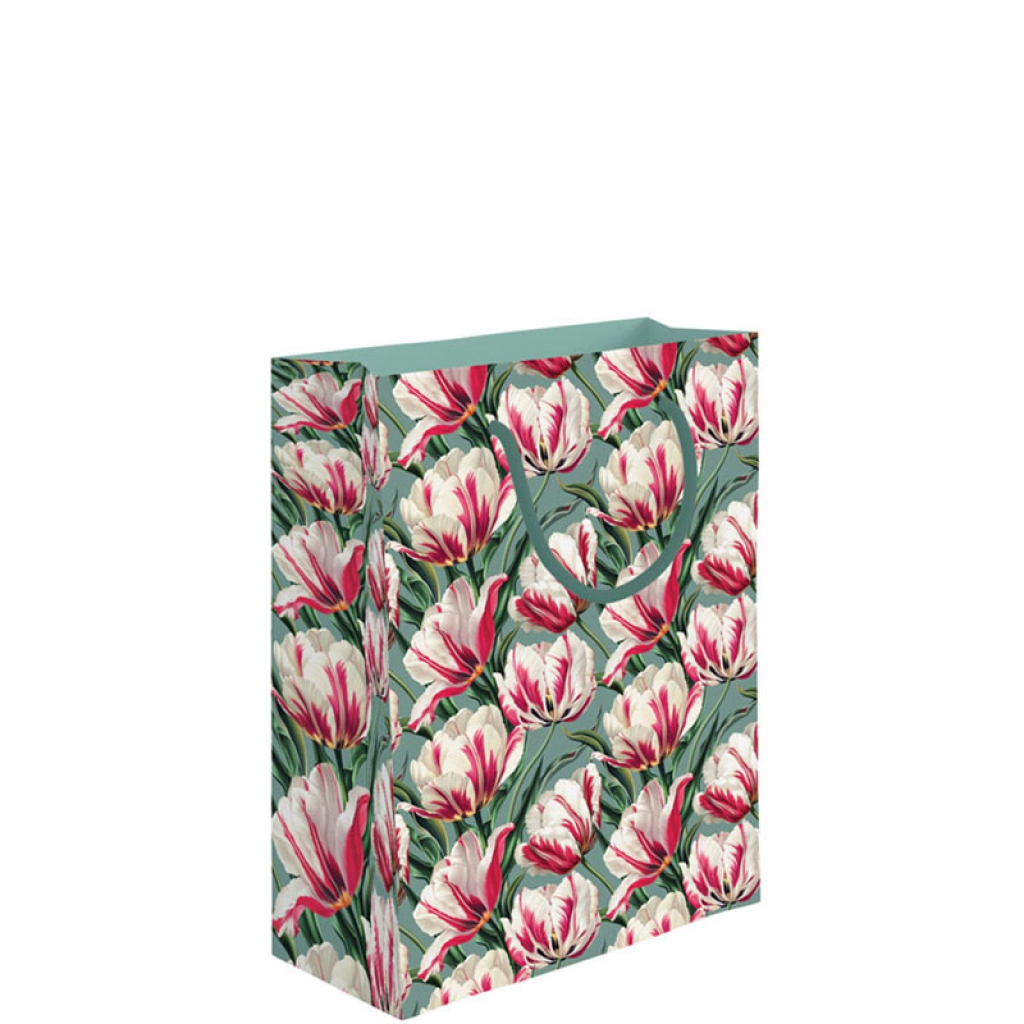 SHOPPER 18X10H23CM TULIPANI FONDO SALVIA: vendita all’ingrosso a prezzi competitivi con consegna veloce by Bocchio srl