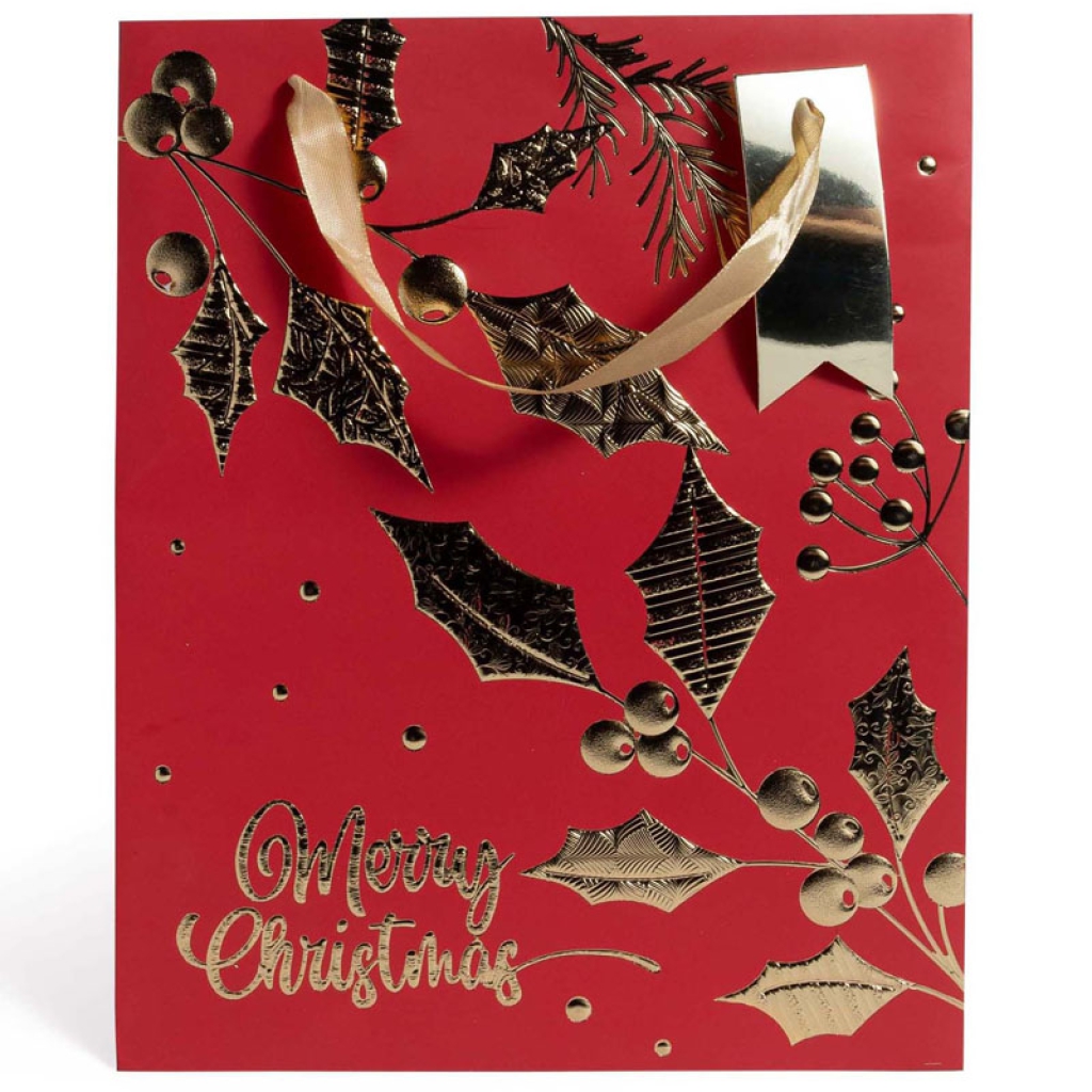 SHOPPER 25X25H31CM ROSSA SCRITTA E DECORO DORATO: vendita all’ingrosso a prezzi competitivi con consegna veloce by Bocchio srl