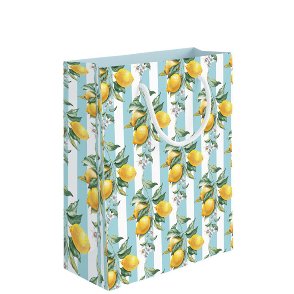 SHOPPER 26X12H32CM LIMONI RIGHE BIANCO CELESTE