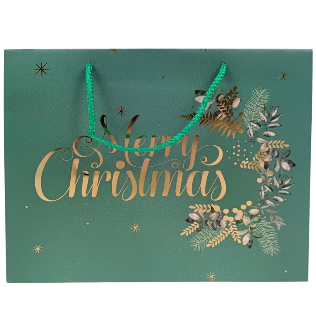 SHOPPER 31X12H26CM VERDE DECORO MERRY XMAS ORO: vendita all’ingrosso a prezzi competitivi con consegna veloce by Bocchio srl