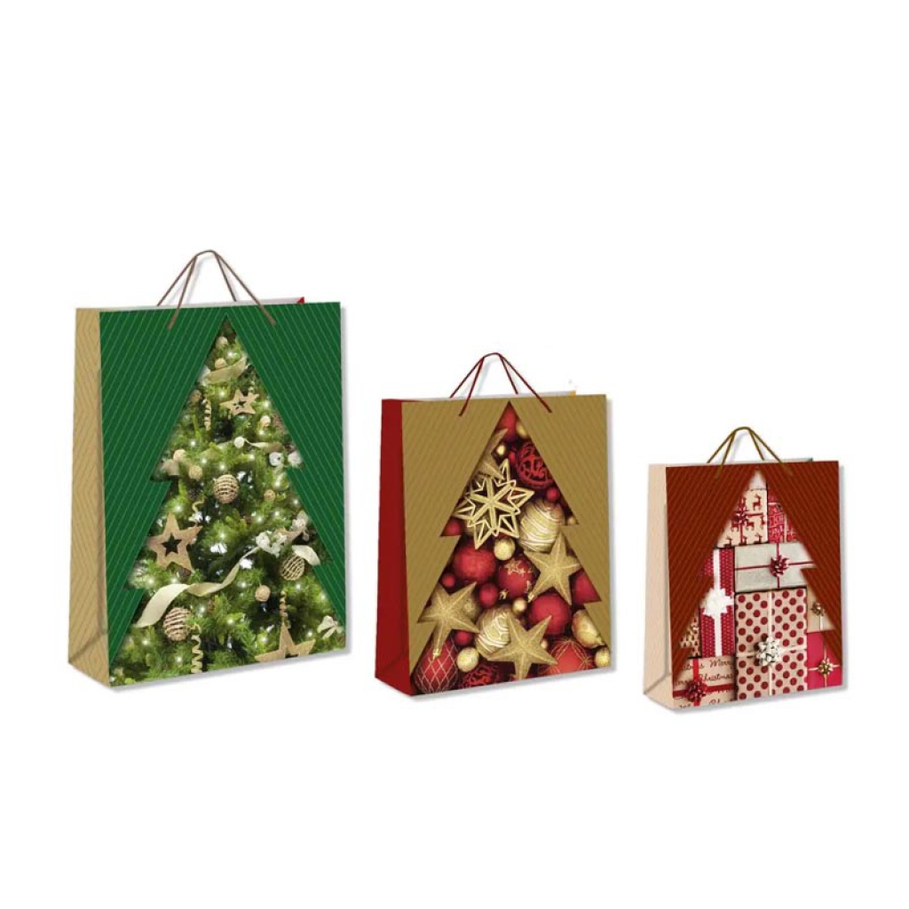 SHOPPER 33X26X13CM XMAS TREE ORO E ROSSO: vendita all’ingrosso a prezzi competitivi con consegna veloce by Bocchio srl
