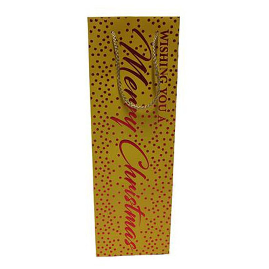 SHOPPER BOTTIGLIA 12X36X11CM POIS MERRY XMAS ORO