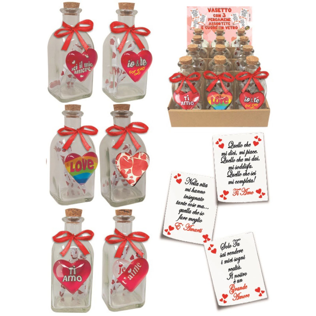 VASETTO IN VETRO CON 3 PERGAMENE 12PZ IN EXPO
