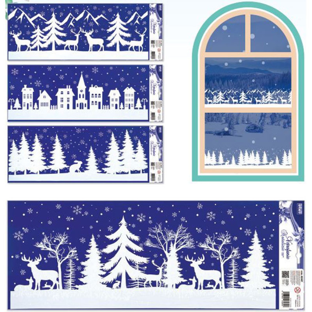 VETROFANIA BIANCA GLITTER 55X23 SOG. NATALIZI ASSORTITI