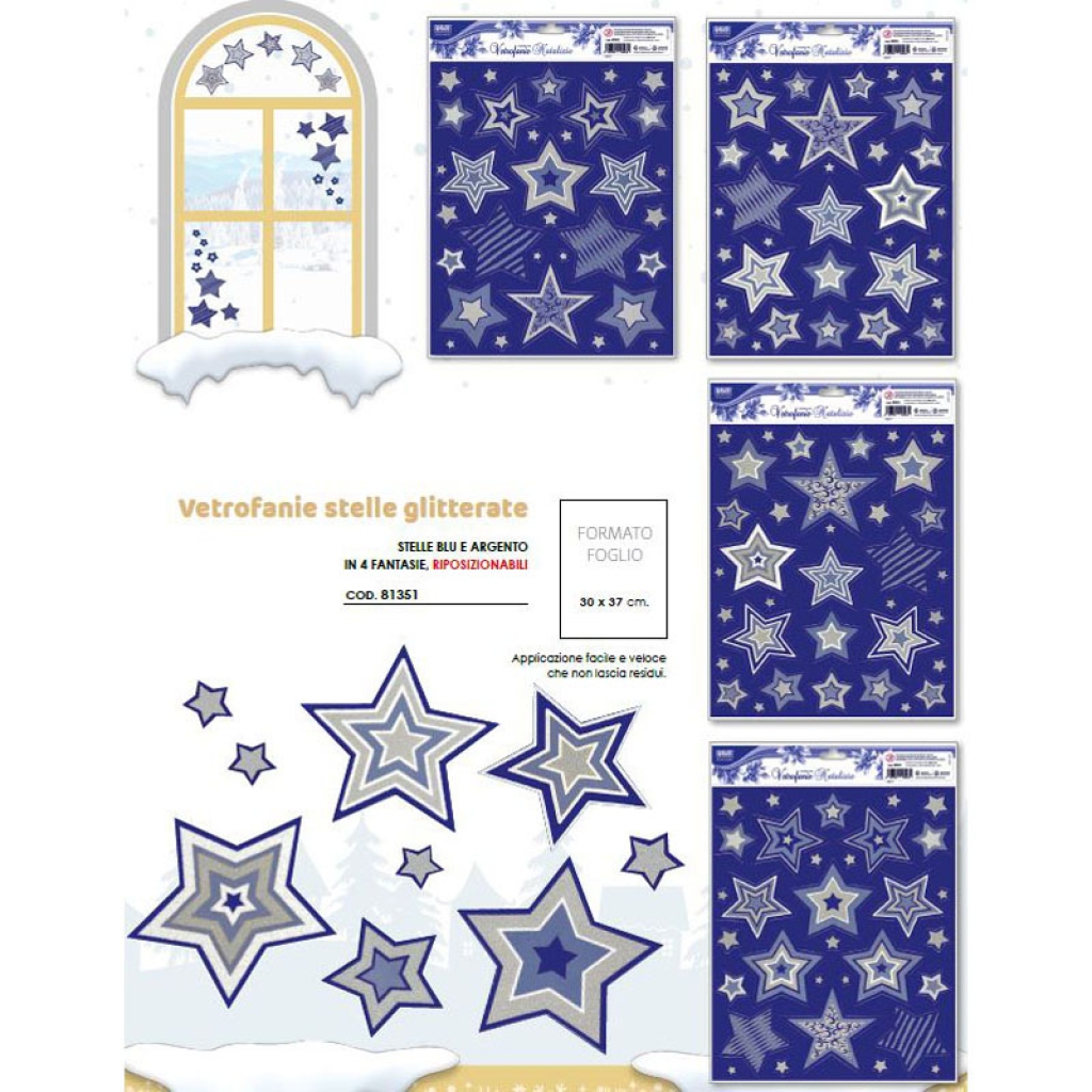 VETROFANIA GLITTER STELLE BLU/ARGENTO ASSORTITE: vendita all’ingrosso a prezzi competitivi con consegna veloce by Bocchio srl